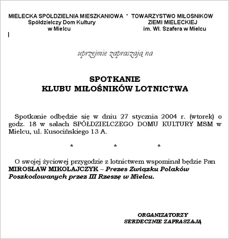 SPOTKANIE KLUBU MIŁOŚNIKÓW LOTNICTWA