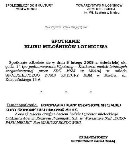 14 (po podsumowaniu Wystawy - Konkursu modeli lotniczych zorganizowanej przez