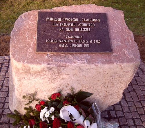 pamiątkowy obelisk upamiętniający zasłużonych dla mieleckiej branży lotniczej.