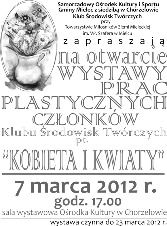 zapraszają 7 marca 2012 roku na otwarcie wystawy "kobieta i kwiaty".