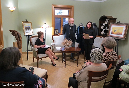 Spotkanie rozpoczęło się rozmową z artystą, którą poprowadziła dyrektor Gminnej